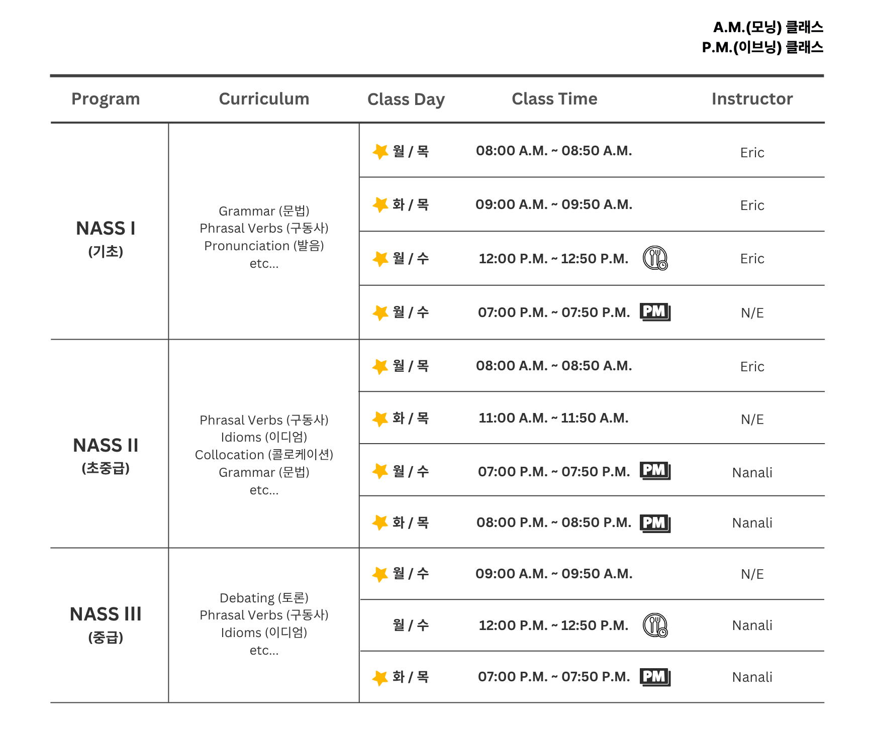 ※ ★ 표시: 마감 임박! 클래스 입니다.