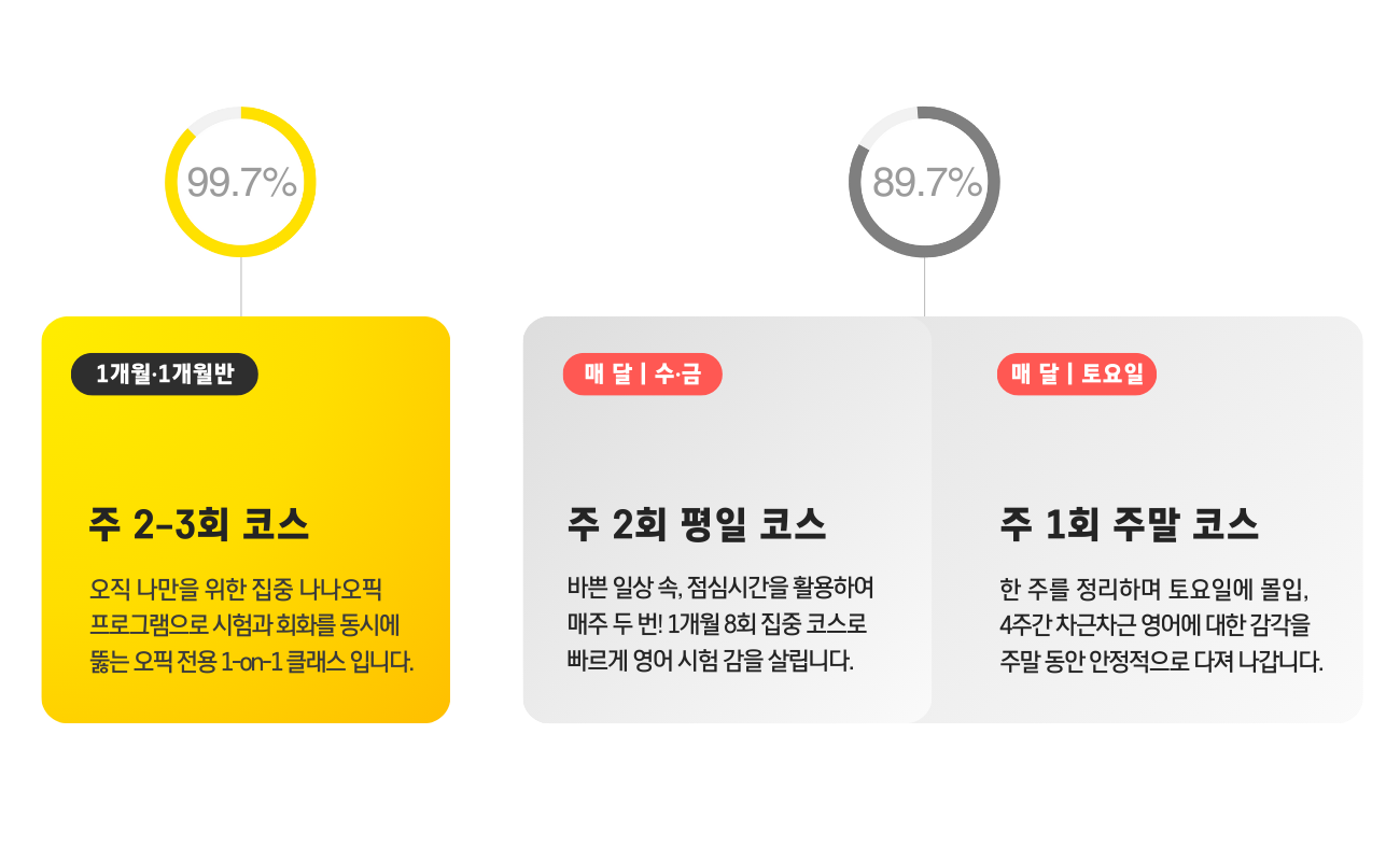 시험 고득점과 실전 회화 능력까지, 오직 당신을 위해 최적화된 커리큘럼입니다.